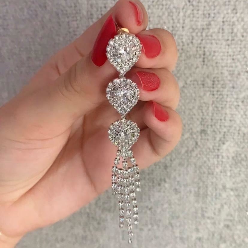 Brinco Longo de Strass Prateado, acessório que é tendência entre as fashionistas, super versátil e estiloso.